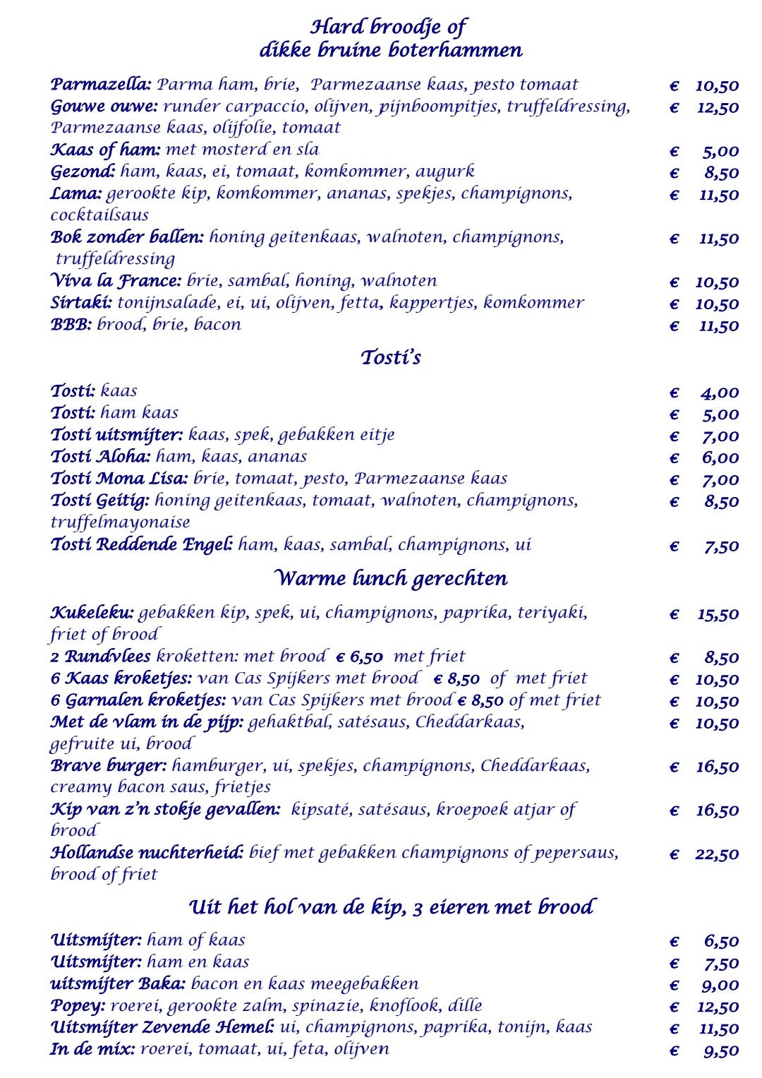High bubbels € 27,50 p.p., alleen op reservering.
